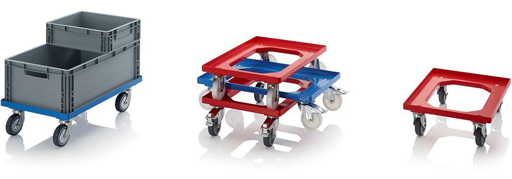 Wymiar podstawowy wózków wynosi 60 x 40 cm, w razie potrzeby umożliwia także transport dwóch mniejszych pojemników o wielkości 40 x 30 cm. Nasz sklep ma w ofercie produktu kilka opcji do wyboru: gumowe lub poliamidowe kółka, kółka stałe lub skrętne i opcjonalnie hamulec ustalający oraz osłonkę. Dzięki temu można idealnie dostosować wózki do potrzeb konkretnej firmy, magazynu lub linii produkcyjnej.